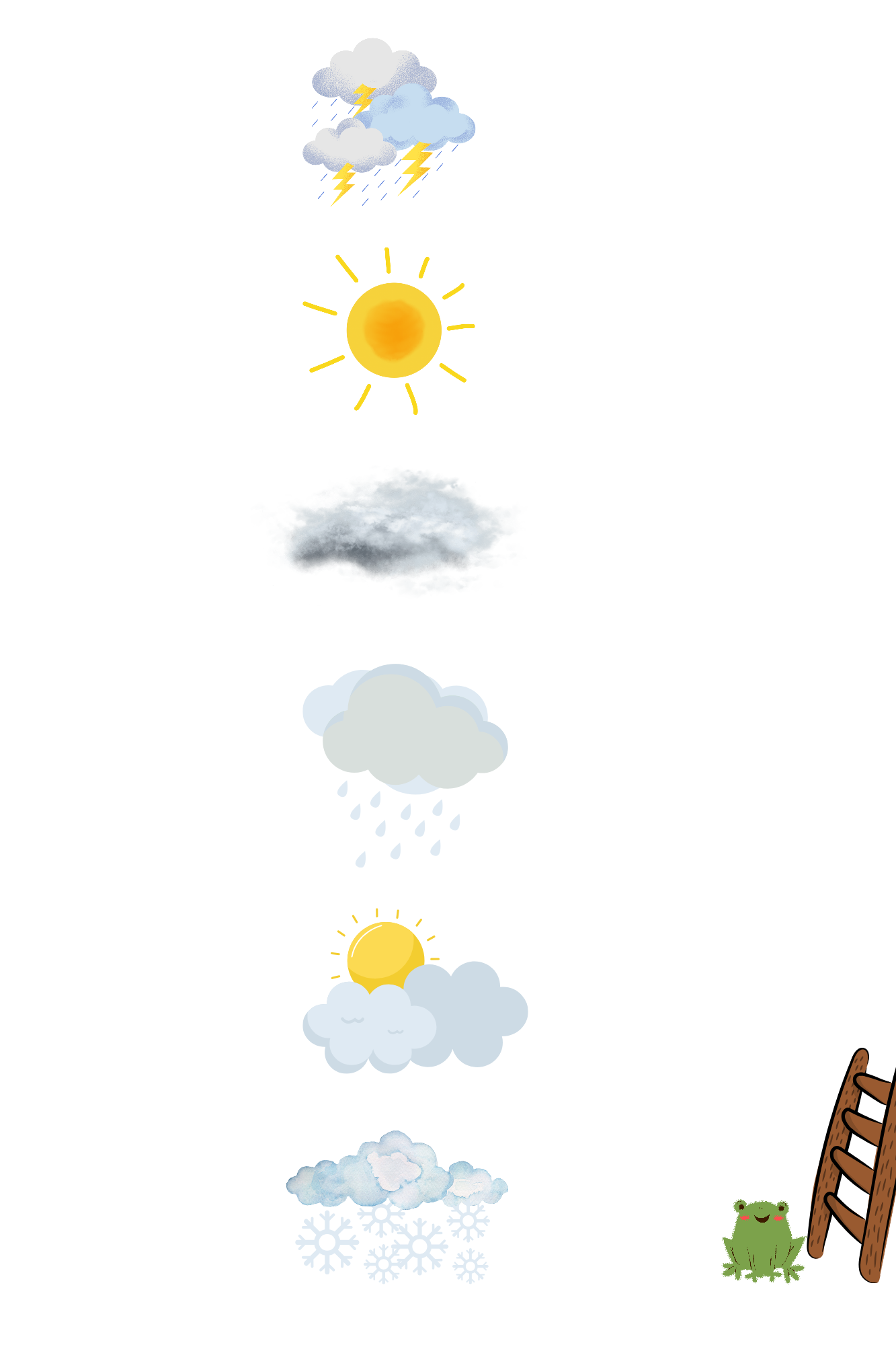 Die Vorlage mit dem verschiedenen Wetter ausdrucken (etwa auf 50%). Ausschneiden und auf einem Karton platzieren. Klebefolie draufkleben und ausschneiden. Wenn das alles erledigt ist, die fertigen Kärtchen mit Kleber an den Wäscheklammern befestigen. (natürlich kann man die Karten auch einfach laminieren)