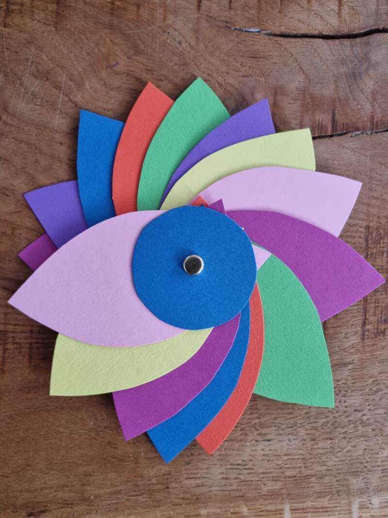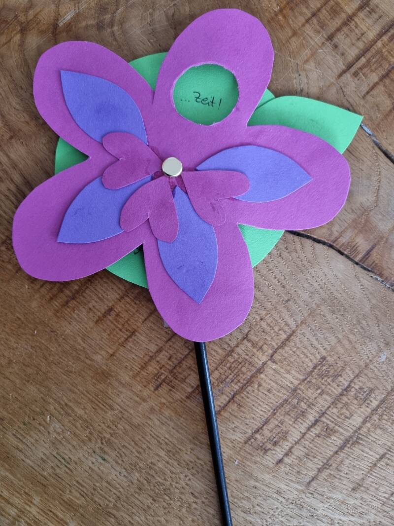 Wenn es ein Abschiedsgeschenk für eine gehende Erzieherin ist, ist es auch eine schöne Idee, wenn jede Familie ein Blütenblatt mit nach Hause nimmt und dort gestaltet.