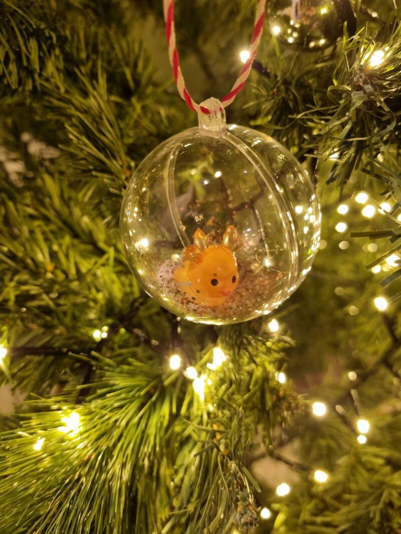 Zudrücken und ein Band hinein fädeln. Schon ist deine Weihnachtskugel super individuell, schnell und einfach fertig.
