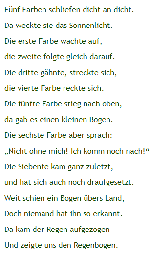 Dann alle Farben nacheinander, mit Rot beginnend. So entsteht ein bunter Regenbogen. Zum Schluss noch den Regen dazu legen und fertig ist das Lied.