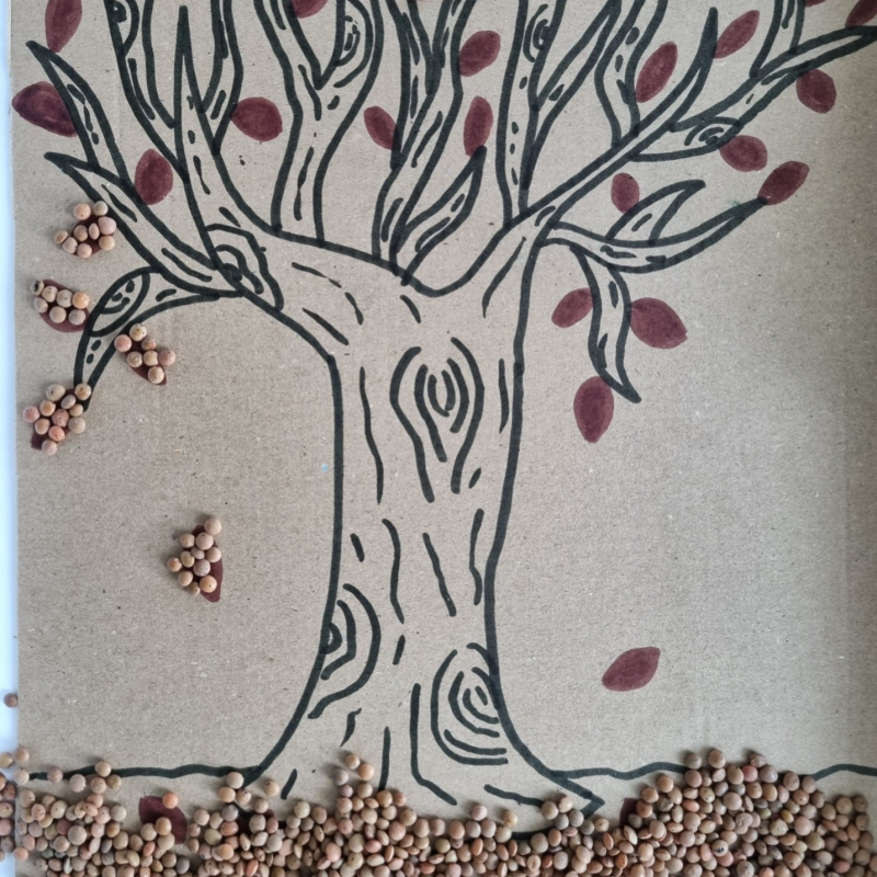 Anders herum geht es natürlich auch! Dann macht ihr die komplette Wanne voll mit Linsen und pinselt z.B. die Blätter frei.